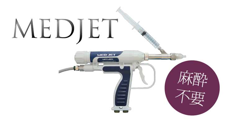 「MEDJET(メドジェット)」は、針を使わずに薬剤をお肌の中に届ける最新の注入機器です。炭酸ガスの力で、髪の成長に必要な成分をとても細かい穴(わずか0.03mm)からお肌に広く行き渡らせることができます。