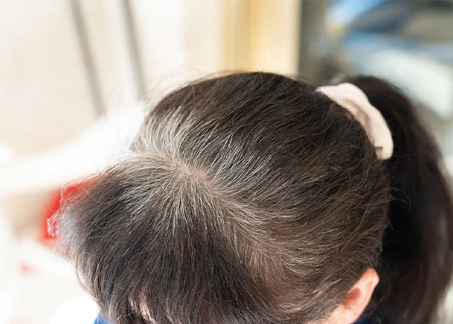 当院では、白髪や髪質の変化といった年齢によるお悩みから、びまん性脱毛や薄毛といった専門的な治療まで、女性の頭皮・毛髪のお悩みに幅広く対応しています。