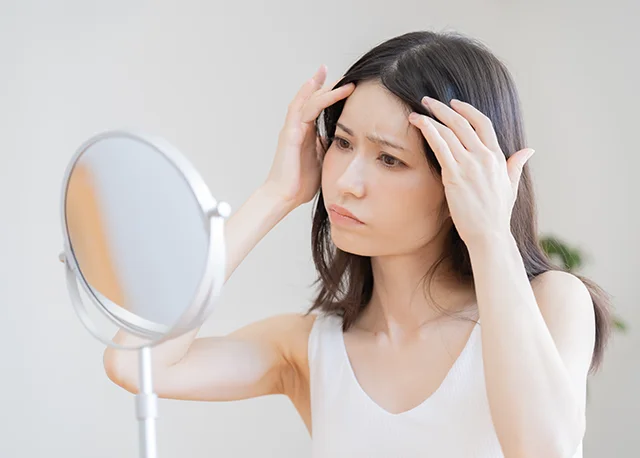 びまん性脱毛症は、20代後半からでも見られることがあり、幅広い年代の女性に起こります。進行は比較的ゆるやかで、気づいたときには「全体的にボリュームが減っている」という状態になっていることが少なくありません。